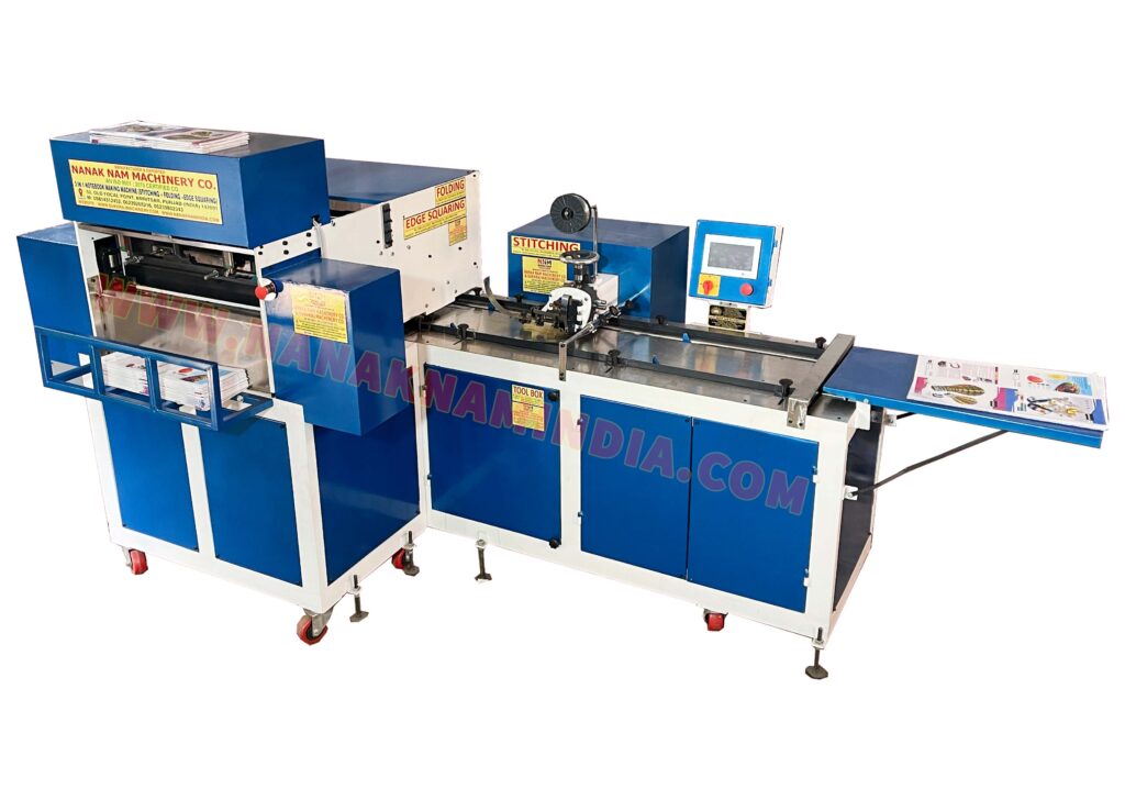 Notebook 3in1 Fully Automatic Heavy Duty Stitching, Folding And Edge Squaring Machine: (3 In 1) (With Plc Controlled System (Siemens), Servo Drive, Touch Screen Panel, Fully Stainless Steel Bed.